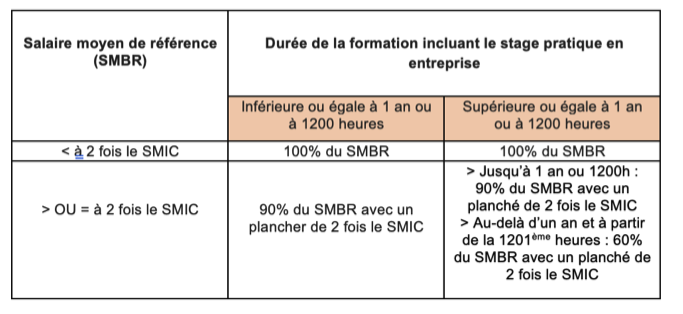 Si votre salaire moyen de référence est supérieur à 2 fois le SMIC, un laissé à charge au titre des coûts pédagogiques est appliqué :